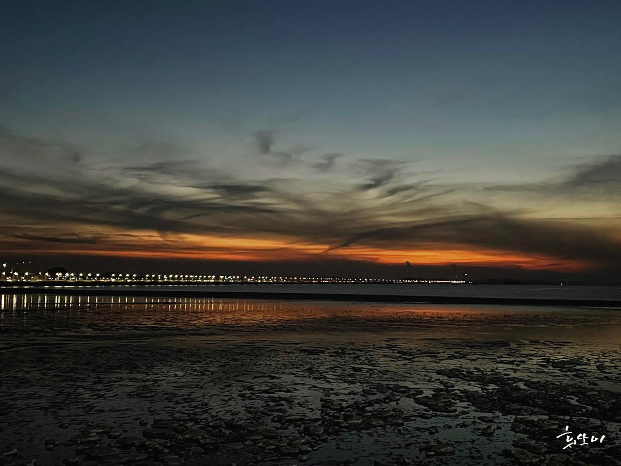 반대쪽으로 보이는 불빛들과 아직 남아있는 노을이 너무 예뻐서 사진으로 담아보았습니다.